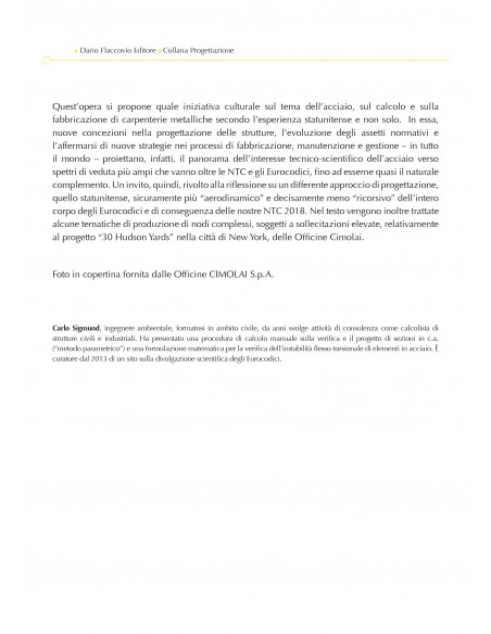 Quest'opera si propone quale iniziativa culturale sul tema dell’acciaio, sul calcolo e sulla fabbricazione di carpenterie metalliche secondo l’esperienza statunitense e non solo. In essa, nuove concezioni nella progettazione delle strutture, l’evoluzione degli assetti normativi e l’affermarsi di nuove strategie nei processi di fabbricazione, manutenzione e gestione – in tutto il mondo – proiettano, infatti, il panorama dell’interesse tecnico-scientifico dell’acciaio verso spettri di veduta più ampi che vanno oltre le NTC e gli Eurocodici, fino ad esserne quasi il naturale complemento. Un invito, quindi, rivolto alla riflessione su un differente approccio di progettazione, quello statunitense, sicuramente più “aerodinamico” e decisamente meno “ricorsivo” dell’intero corpo degli Eurocodici e di conseguenza delle nostre NTC 2018. Nel testo vengono inoltre trattate alcune tematiche di produzione di nodi complessi, soggetti a sollecitazioni elevate, relativamente al progetto “30 Hudson Yards” nella città di New York, delle Officine Cimolai.