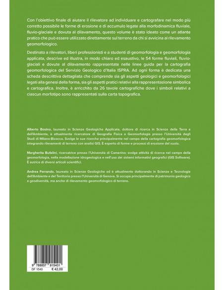 Geomorfologia di terreno descrive e illustra le 54 forme fluviali, fluvio-glaciali e dovute al dilavamento rappresentate nelle linee guida per la cartografia geomorfologica del Servizio Geologico d’Italia ISPRA e lo fa in modo chiaro ed esaustivo.