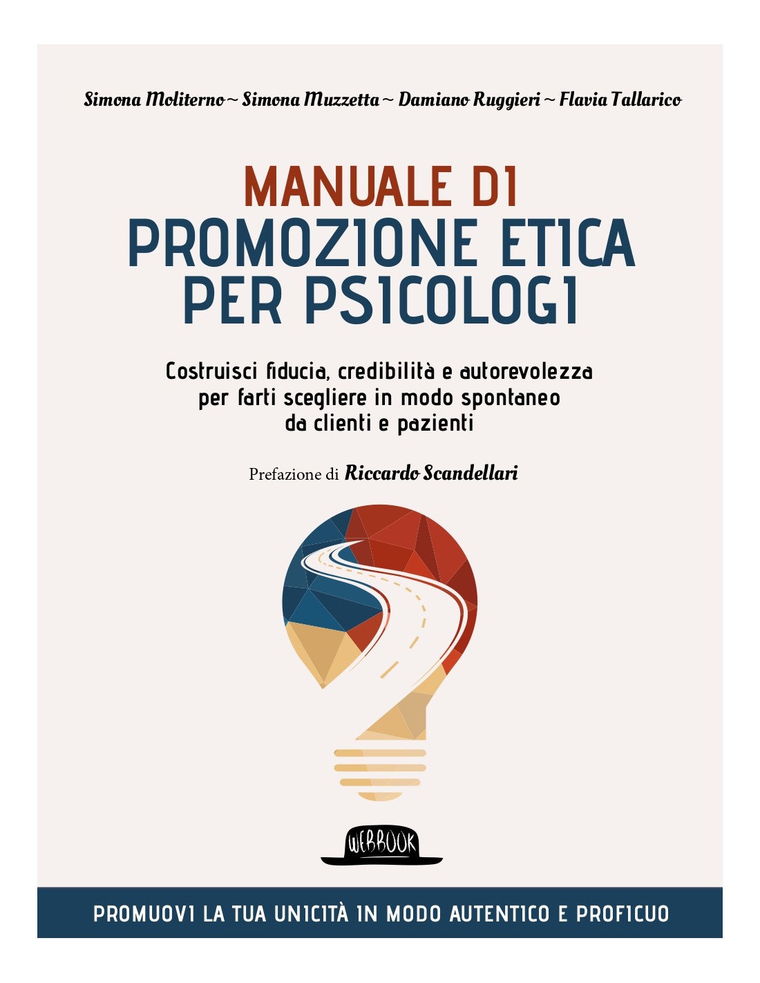 Il Manuale di promozione etica per psicologi si rivolge ai professionisti psicologi alle prime armi o che vorrebbero ottenere di più dalla loro attività professionale per condurli passo dopo passo verso la soddisfazione lavorativa, attraverso una visione etica e pratica della promozione della propria professione.