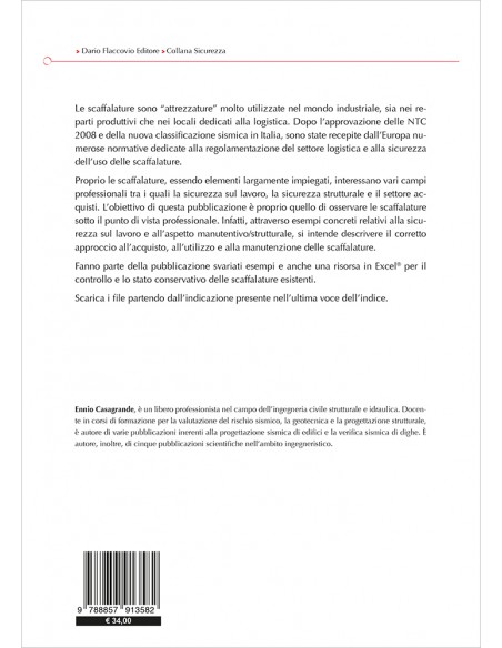 Per il largo impiego delle scaffalature nell'ambito industriale, il tema della sicurezza sismica di scaffalature e magazzini interessa vari campi professionali tra i quali la sicurezza sul lavoro, la sicurezza strutturale e il settore acquisti. Il libro parte da un excursus sulla normativa tecnica di settore che regolamenta le scaffalature, o elementi non strutturali di stoccaggio dei prodotti, e spiega come deve essere progettata una scaffalatura, come deve essere gestita e sottoposta a manutenzione.