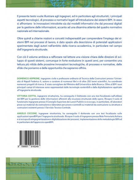 BIM per l'ingegneria strutturale mira a fornire agli ingegneri, un'analisi approfondita dei principali aspetti tecnologici, di processo e normativi legati all’introduzione dei sistemi BIM.